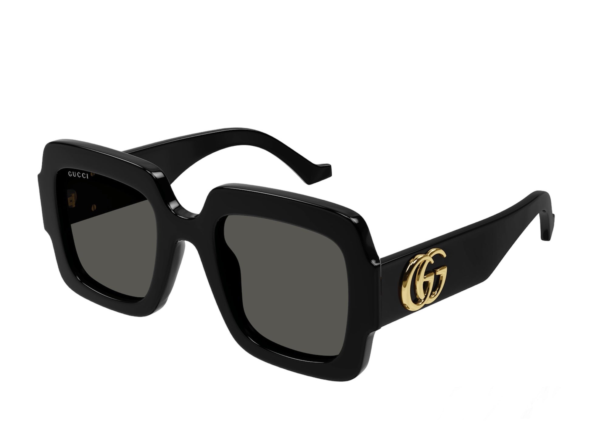 Forme oversize e audaci in acetato con aste con cerniera a 45° impreziosite da colori unici per un look da diva senza fine. Forma audace e oversize in acetato. Logo ad incastro GG dorato sull'asta. Palette di colori commerciali ma allo stesso tempo fashion con motivi rigati impreziositi da un effetto glitter.